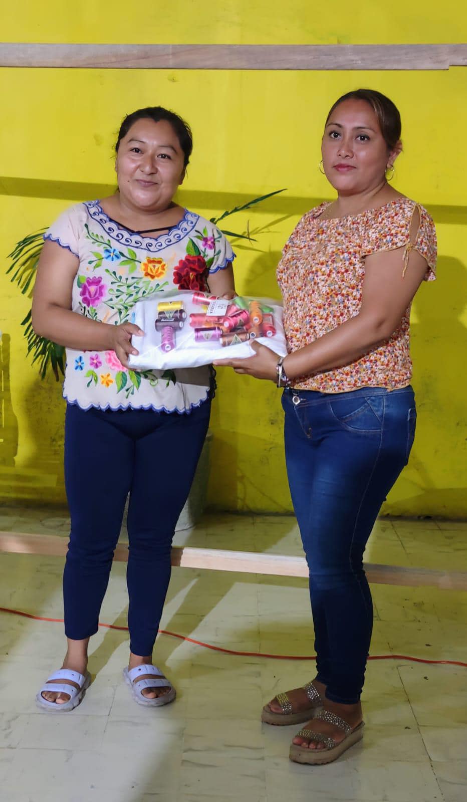 Los apoyos fueron otorgados a mujeres dedicadas a la elaboración de prendas en bordado de punto de cruz a mano, bordado a máquina, artesanías en fibra de henequén, hurdido de hamacas y apicultura.